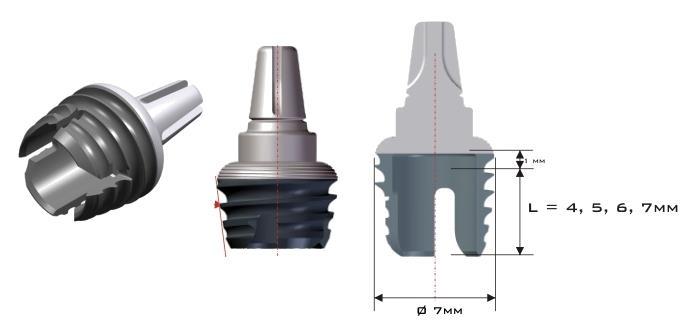 Ортопедическая платформа имплантата имеет коническую форму с дивергентностью 7°.